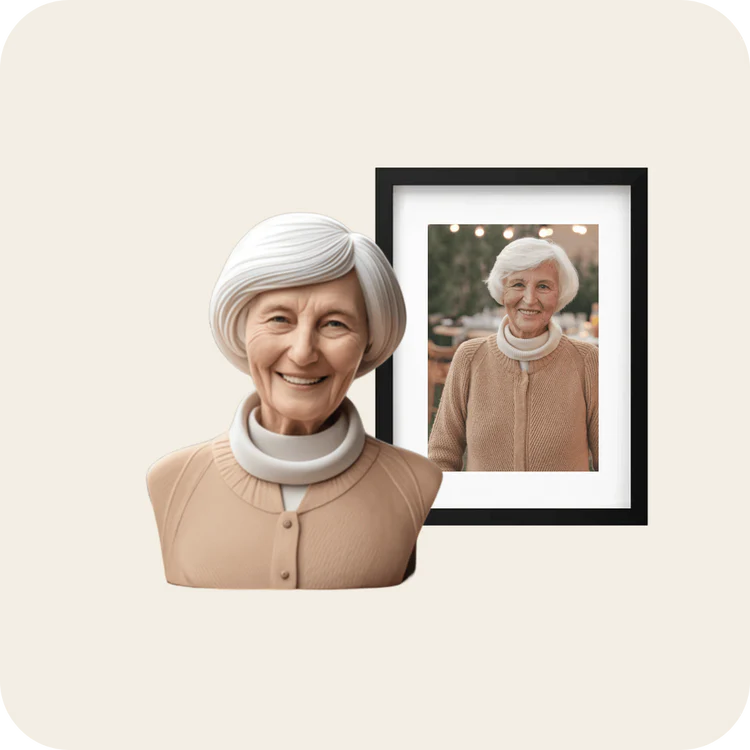 Creëer een tijdloos eerbetoon met een gepersonaliseerd 3D-portret dat hun herinnering generaties lang levend houdt.